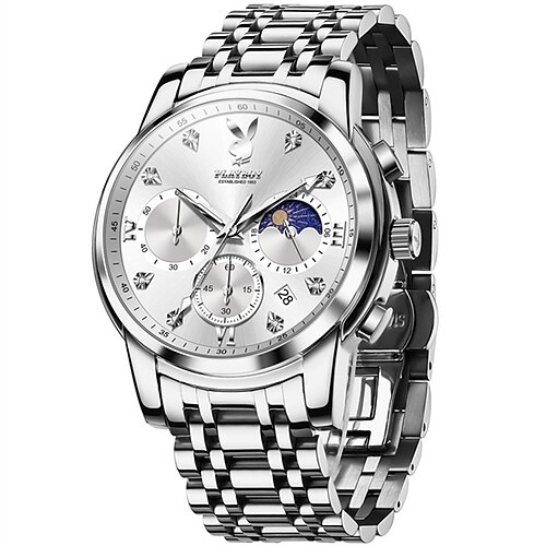 un nuovo orologio da uomo originale in stile business con fasi lunari luminose e display del calendario. orologio al quarzo alla moda, casual e versatile, regalo ideale per la vita e i viaggi,
