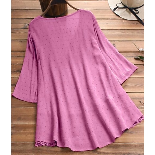 Per donna Camicia Camicia di Pizzo Camicie ispirate al lino Blusa Colore Puro Essenziale Casual Manica 3/4 Scollo a V Top Regolari Quotidiano Pizzo Bottoni Bianco Rosa Verde Blu scuro Estate