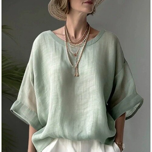Per donna Camicia Camicie ispirate al lino Blusa Tinta unica Semplice Essenziale Girocollo Quotidiano Bottoni Bianco Verde militare Azzurro Estate