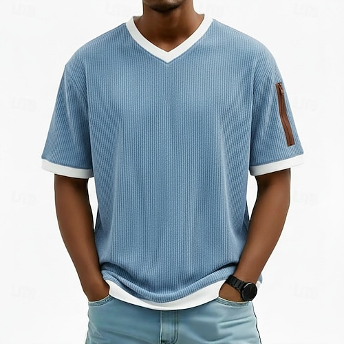 Per uomo Maglietta Camicia di Velluto a Coste Camicia a Maniche Corte Manica Corta Scollo a V Estate Primavera Blocco di colori Moda Streetwear Testurizzato Patchwork Quotidiano Sport Outdoor Sport