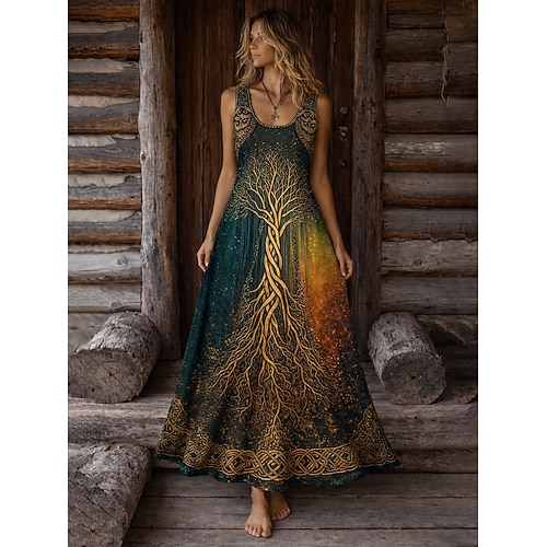 Abito Midi da Donna Boho Abito Casual Abito Svasato Abito Estivo Abito Vintage da Spiaggia Vestibilità Regolare Grafica Colore Gradiente Senza Maniche Collo a Giro Blu Verde Estate Primavera
