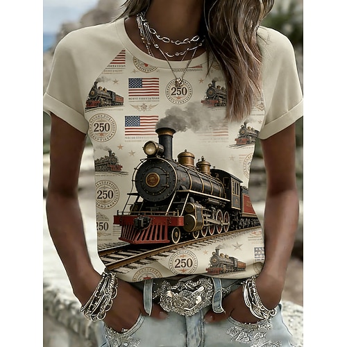 Maglietta patriottica per il Giorno dell'Indipendenza Americana 250° Anniversario Maglietta da donna Grafica Bandiera Vintage Stile Casual Maniche corte Collo giro Tops regolari Stampa quotidiana