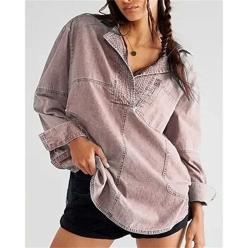 Per donna Camicia Top Eleganti Tinta unica Semplice Elegante Vintage Signore Manica Lunga Colletto a Camicia Top Regolari Lavoro Quotidiano Ferie Patchwork Tasca Blu Reale Blu Azzurro cielo Viola