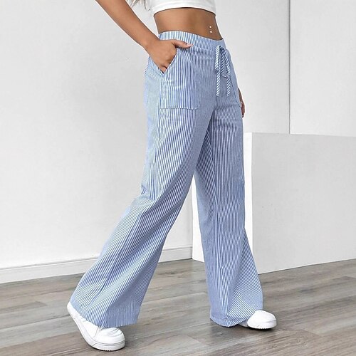 Per donna Gamba larga Vacanza Vintage Stile Etnico Lunghezza intera Vita Alta A righe Inelastico Abbigliamento casual alla moda Giallo Rosso Marrone chiaro Azzurro cielo Estate Primavera Autunno