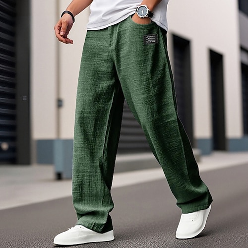Per uomo Pantaloni di lino Pantaloni Pantaloni estivi Pantaloni da spiaggia Tasche Vita elastica Liscio Comfort Traspirante Giornaliero Per eventi Da mare Hawaiano Boho Nero Blu