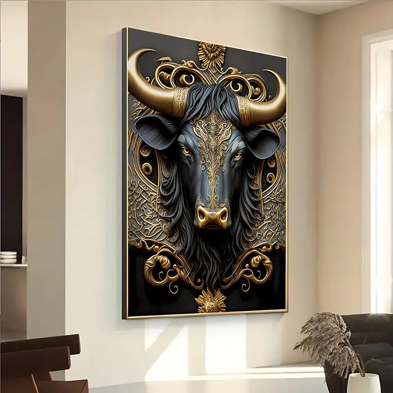 1pc Frameless Modern Bull Gold Art Decorative Canvas Poster For Bedroom And Living Room Decoration