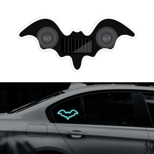 Luci diurne decorative a forma di pipistrello al neon con ventosa solare per auto, senza fili, ricaricabili tramite USB Type-C, 8 modalità, illuminazione ambientale a LED per interni auto. esterno,