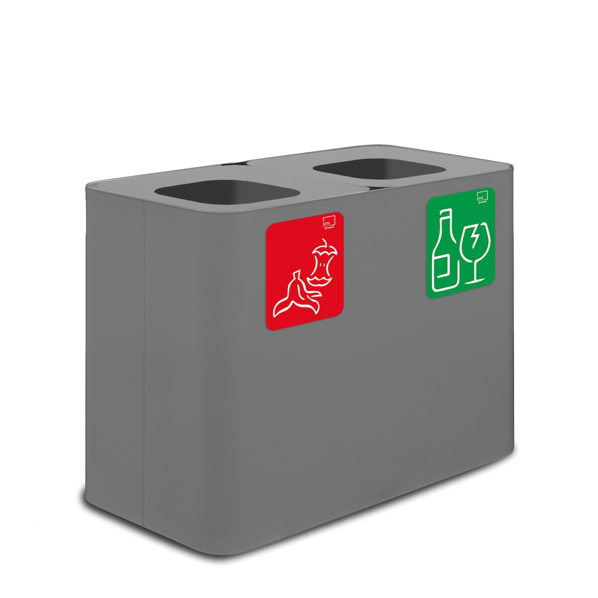 Stil Casa PURE Abfallsammelsystem, lackierter Stahl, 80x38xh. 50 cm, 140 Liter mit zwei Fächern zu je 70 Litern, grau.