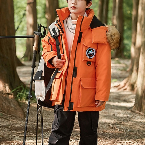 Kinder Jungen Daunenjacke Outdoorjacke Oberbekleidung Farbblock Langarm Tasche warm halten Winddicht Mantel Outdoor Täglich Basic Blau Schwarz Rote Winter 6 Jahre