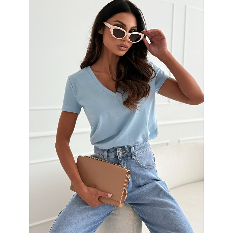 Women's Tracksuit Short Sleeve V Neck Plain Light Green Light Brown Blue Summer Regular Fit