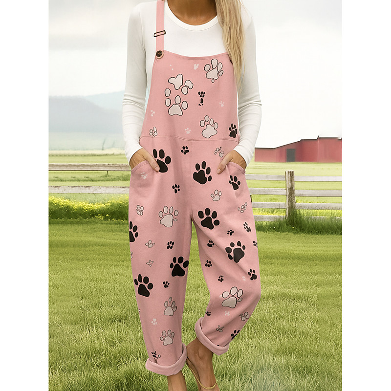 100% Cotton Women's Jumpsuit Active Floral Sleeveless Sleeveless Straight Round Neck Pocket with Pocket Vacation Daily Loose Fit Pink Blue Purple Summer