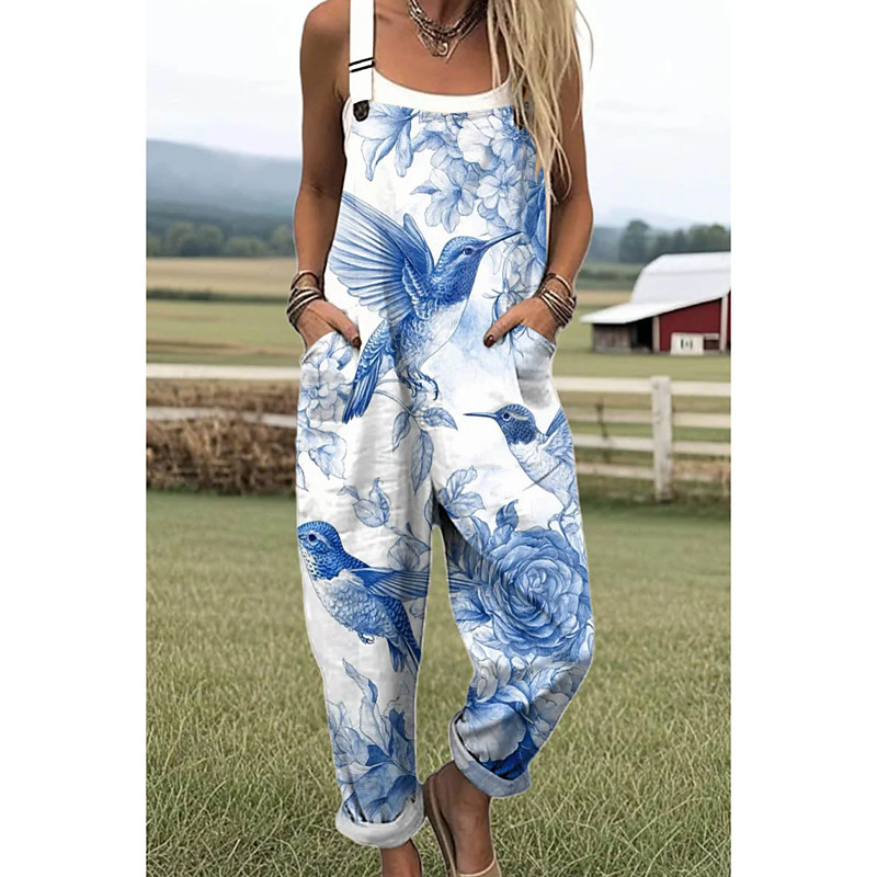 Women's Dungarees Active Floral Sleeveless Sleeveless Straight Square Neck Pocket with Pocket Vacation Daily Loose Fit Light Green Blue Green Summer
