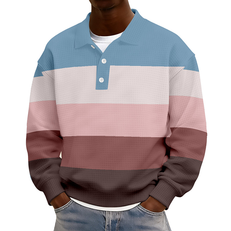 Men's Horizontal Stripes Waffle Polo Shirts Rugby Polo Rugby Polo Shirts Long Sleeve Polo Shirts Lapel Sportswear Casual School Athleisure Daily Wear 3D Print Spring Fall Winter Blue Pink Brown