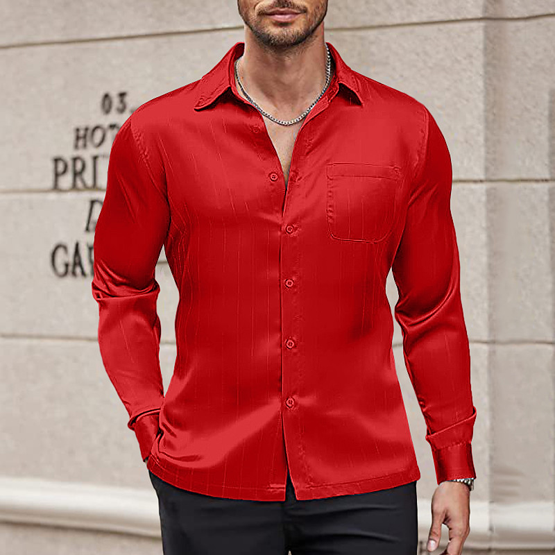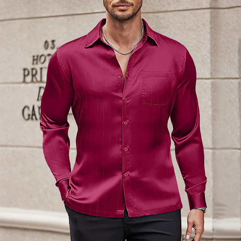 Men's Shirt Satin Shirt Dress Shirt Casual Shirt Button Up Shirt Prom Shirt Plain Formal Wedding Light Blue Black White Wine Long Sleeve Lapel All Seasons Clothing Apparel Pocket