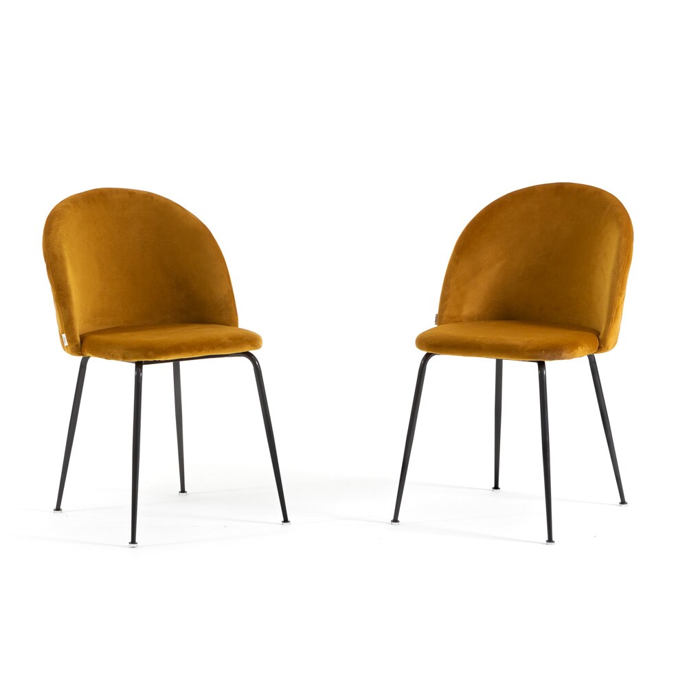 RATTATAN Set aus 2 Innenstühlen aus Samt, gepolstert, mit Metallbeinen, elegantes Design für Esszimmer, Bar und Restaurant – Sara – Senf/Dunkelgrau