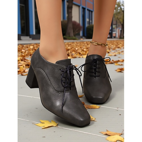 stivaletti da donna marroni con lacci e tacco a blocco – classico stile vintage anni '50, perfetti per l'ufficio, le uscite quotidiane e gli eventi autunnali