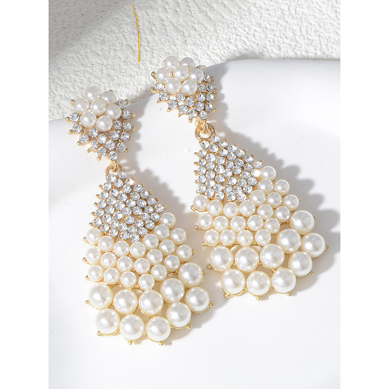 Elegant Faux Pearl and Rhinestone Drop Earrings – Vintage Style, Gold-Plated, Perfect for Weddings and Formal Occasions
