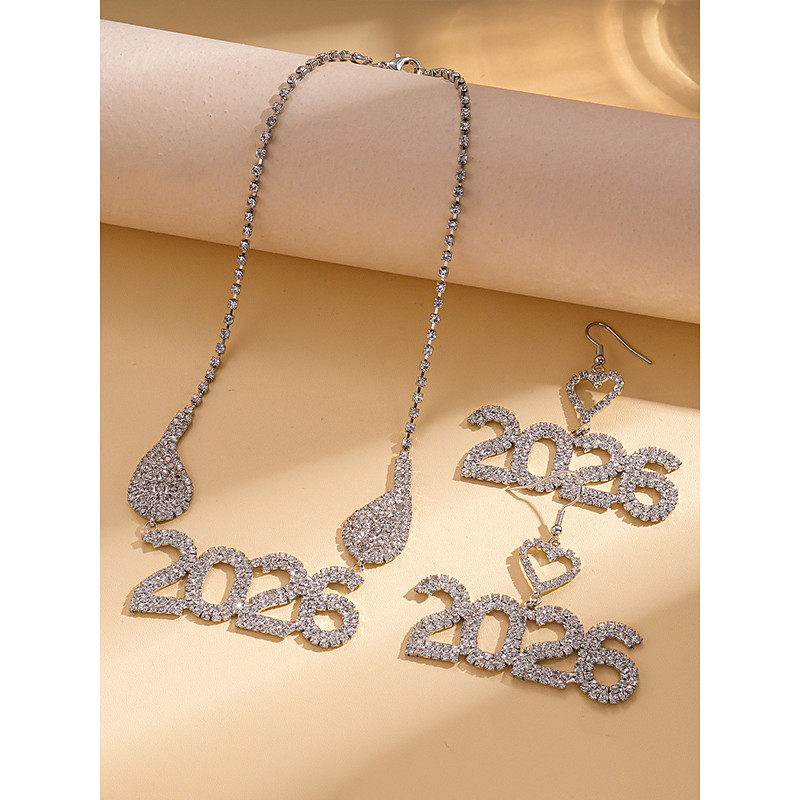 Women's Alloy Zirconia Necklace and Earring Set - Sparkling 2026 Design, Perfect for New Year and Special Occasions
