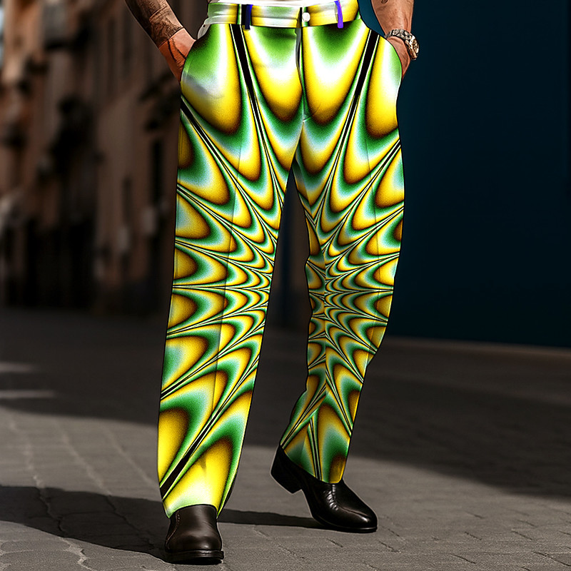 Men's Geometric Optical Illusion Laser Trousers Dress Pants Suit Pants Mid Waist Casual Holiday Streetwear Relaxed Fit Flat Front Dress Pants with Side Pockets Spring Fall 3D Print White Red Blue