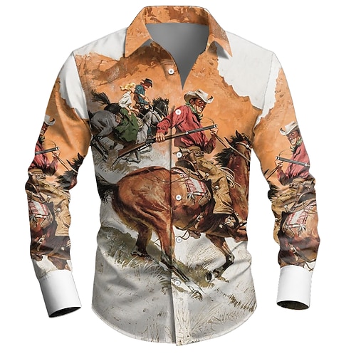 Per uomo Cowboy a cavallo Camicia Camicia Western Camicia da cowboy Manica Lunga Vintage Retrò Casuale All'aperto Abbigliamento da lavoro Primavera Autunno Collo ripiegato Stampa 3D Camicie con