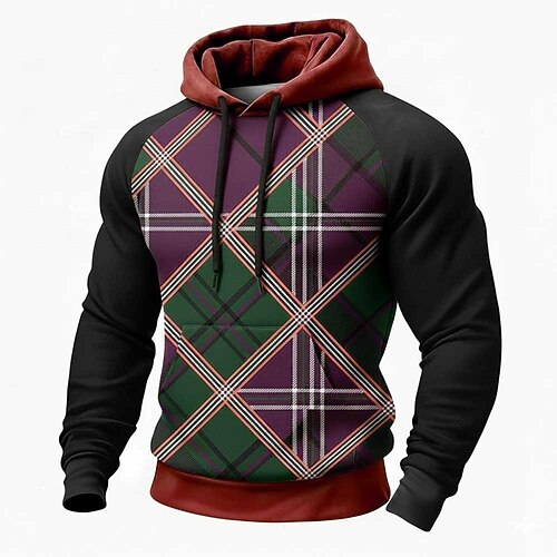Per uomo Geometrico Plaid Felpa con Cappuccio Felpa Moda Quotidiano Girocollo Casa Abbigliamento casual alla moda Feste Blu Viola Marrone Grigio Coulisse Autunno Inverno progettista S M L XL XXL XXXL