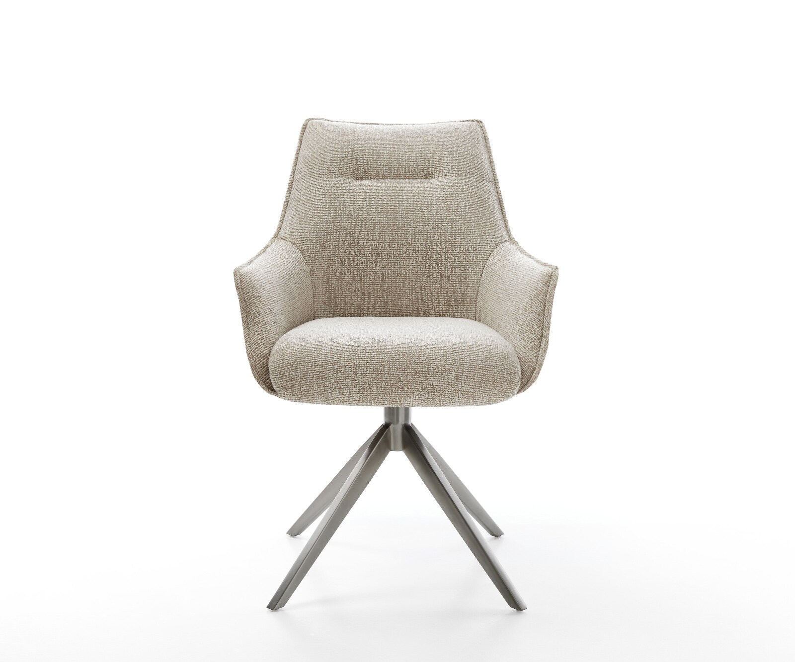 DELIFE Draaistoel Zelia-Flex met armleuning geweven stof beige kruisframe breed roestvrij staal 360° draaibaar rocker-functie pocketveer kern