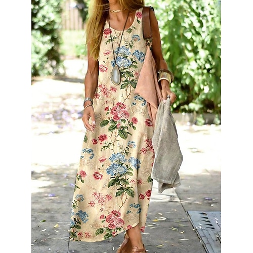 Per donna Abito maxi Abito a trapezio Abito a spalle scoperte Vacanza Casual Boho Uscire Vestibilità comoda Floreale Grafico Senza Maniche Girocollo Blu Giallo Rosa Estate Primavera
