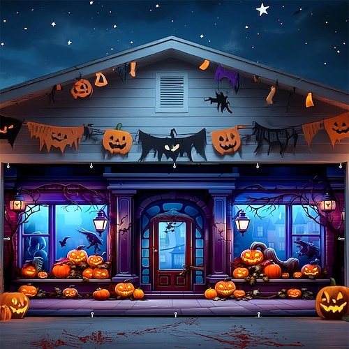 Halloween arazzo Copertura per porta del garage Grande appeso Zucca Negozio degli orrori 3D Gotico punk oscuro Da serata All'aperto Sfondi di ripresa Yarda Casa infestata Arredamento per la casa