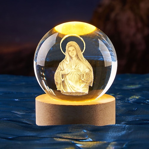 Statua della Vergine Maria in cristallo 3D con base in legno, statua della Madonna di Guadalupe in cristallo inciso al laser, sfera di vetro, regali di Pasqua religiosi cristiani cattolici, madre