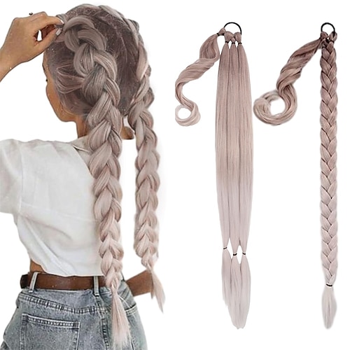 lunga coda di cavallo intrecciata con capelli lisci avvolgenti estensioni dei capelli coda di cavallo con elastico per capelli morbido e sano pezzo di capelli sintetici per donne ragazze ogni giorno