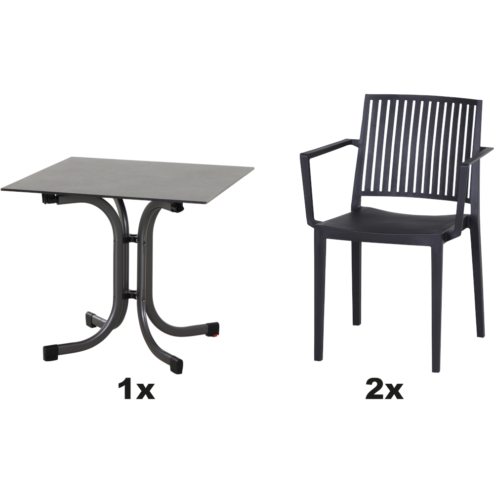 SIENA GARDEN Urban Lights Set 3teilig Lane Sessel gastrotauglich anthrazit mit Tisch Sola 80x80