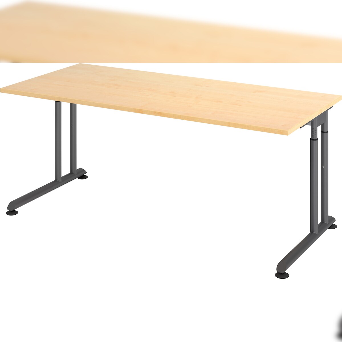 bümö höhenverstellbarer Schreibtisch Z-Serie 180x80 cm in Ahorn, Gestell in Graphit - großer PC Tisch für's Büro manuell höhenverstellbar,
