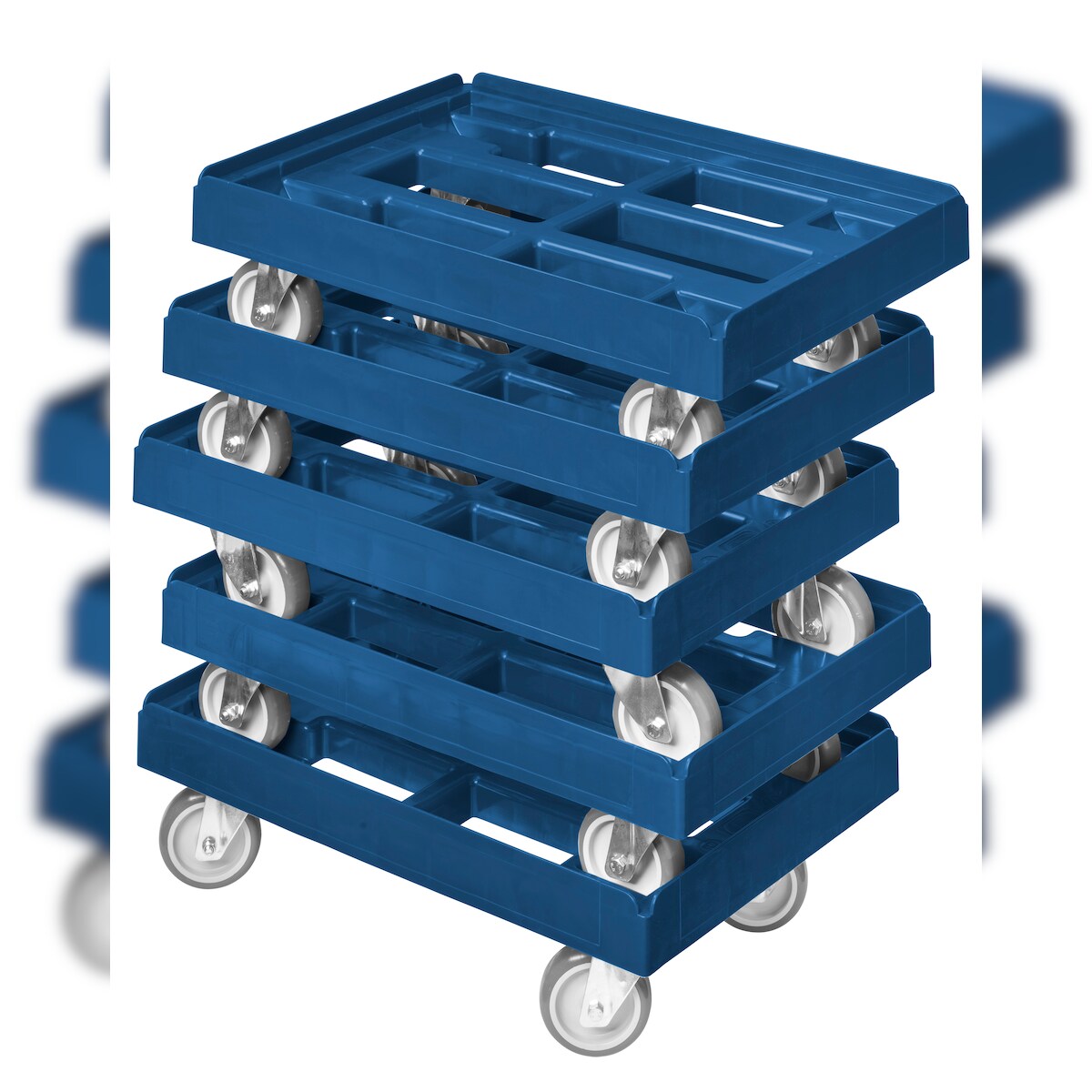 5 Stück Transportroller für Kisten 60 x 40 cm mit 4 Lenkrollen in blau