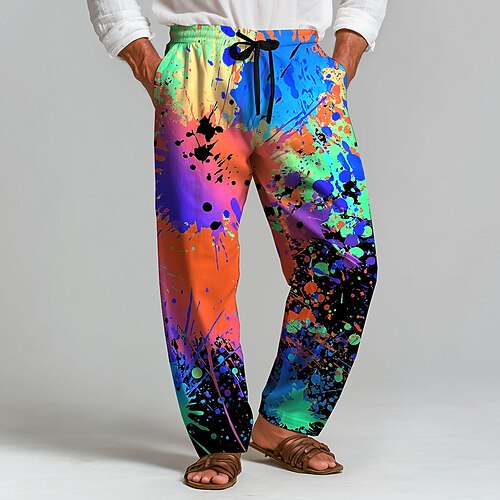Herren Bunt Tuschemalerei Hose Baggy-Hosen Freizeithose Mittlere Taille Mode Outdoor Urlaub Heim Elastischer Kordelzug in der Taille Leinenähnliche Hose mit Taschen Frühling Herbst 3D-Druck Blau