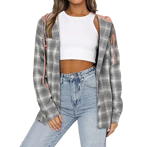 Per donna Blusa Plaid Vintage Elegante Manica Lunga Con Cappuccio Top Regolari Quotidiano Ferie Uscire Patchwork Bottoni Blu Nero Viola Verde Albicocca Autunno Inverno
