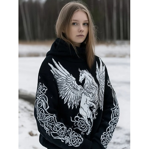 Per donna Felpa con cappuccio Grafico Animale Tribale Elegante Punk Vintage Manica Lunga Con Cappuccio Top Regolari Casuale Casa Streetwear Nero Bianco Beige Autunno