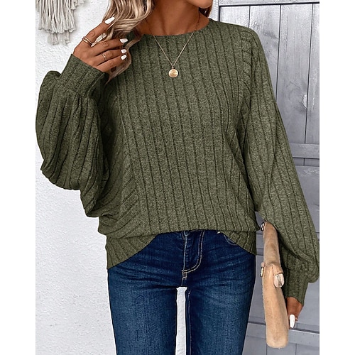 Per donna Maglietta Semplice Casual Manica Lunga Girocollo Top Regolari Quotidiano Verde primavera Nero Blu Reale Blu Grigio Primavera Autunno
