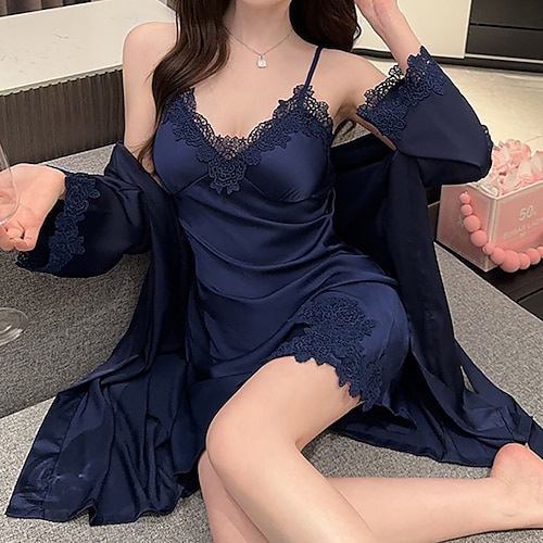 Per donna Abbigliamento da Casa Camicia da Notte Moda Sexy Casual Colore Puro Patchwork Vestiti Casa Vacanza Manica Lunga Scollo a V Nero Rosa Vino Oro Blu scuro Estate Primavera Autunno Vestibilit
