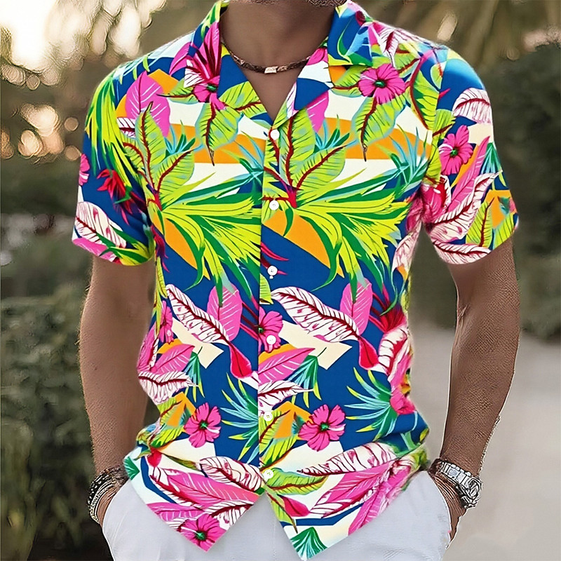 Men's Floral Print Palm Leaf Tropical Plants Shirt Cuban Collar Shirt Summer Hawaiian Shirt Short Sleeve Hawaiian Vacation Holiday Beach Wear Summer Spring Camp Collar Shirt 3D Print Pink Orange