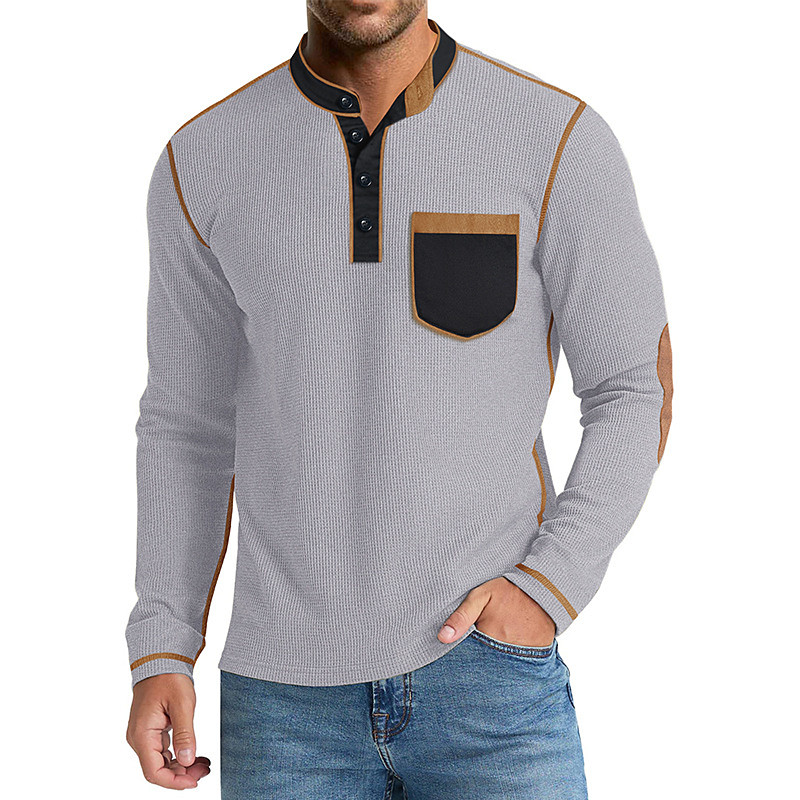 Men's Waffle Henley Shirt Tee Shirts With Elbow Patches Long Sleeve Henley Summer Fall Winter Solid Color Plain Fashion Designer Casual Vintage Style Color Block Casual Daily Outdoor Light Blue Dark