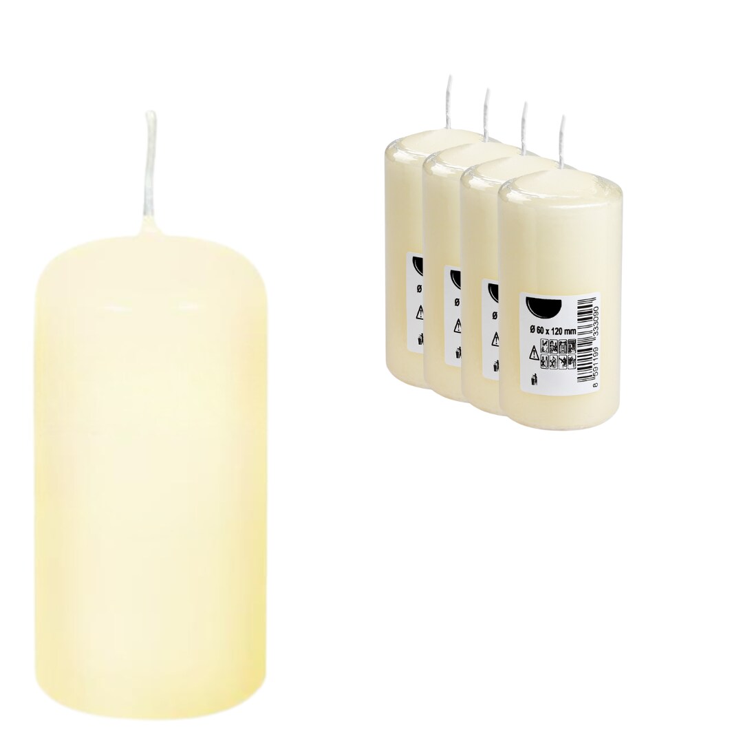 DeinPack Stumpenkerzen champagner- 4 Stück Ø 6 cm- Höhe 12 cm Brenndauer: ca. 30 Stunden Hochwertige Stumpenkerze