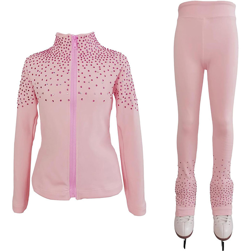 Figure Skating Fleece Jacket Women's Girls' Ice Skating Jacket Top Pink Blue Purple Stretchy Training Competition Skating Wear Thermal Warm Crystal / Rhinestone Long Sleeve Ice Skating Figure Skating