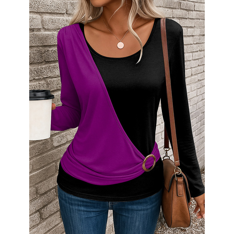 Women's T Shirt Solid Color Stylish Casual Long Sleeve Crew Neck Regular Tops Daily Patchwork Print Sage Green Red Blue Purple Green Summer Fall Winter
