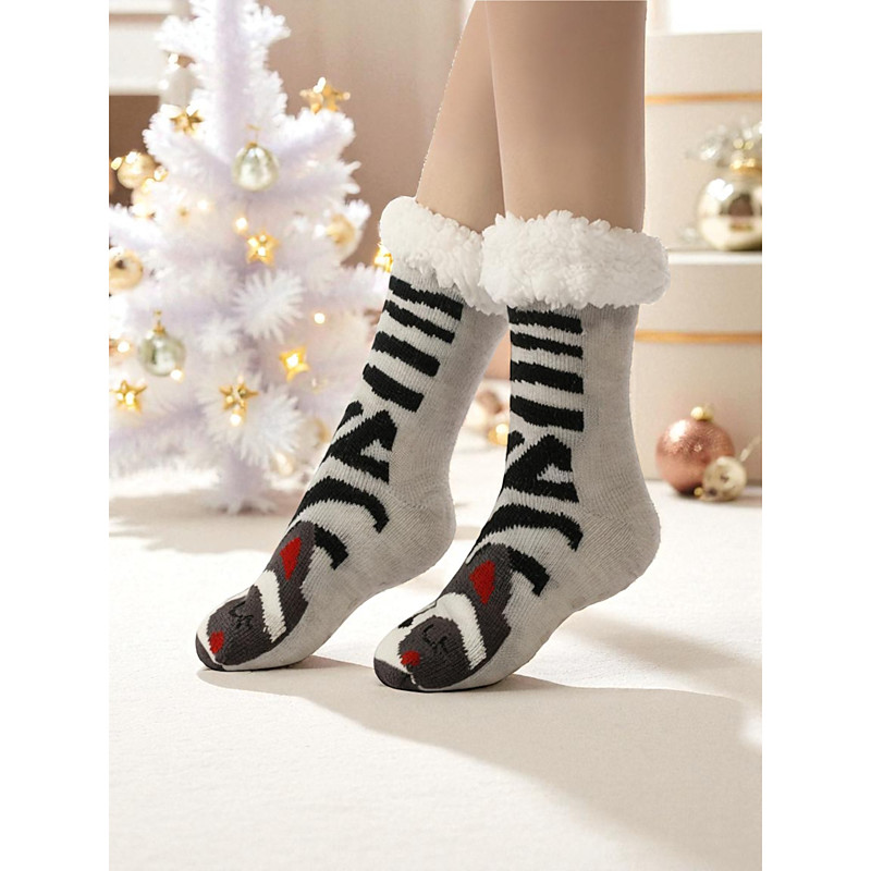 Christmas Women's Slipper Socks, Cartoon Coral Fleece Plush Crew Socks, Mid-Calf Fluffy Floor Socks, Christmas Holiday Cross-Border Edition