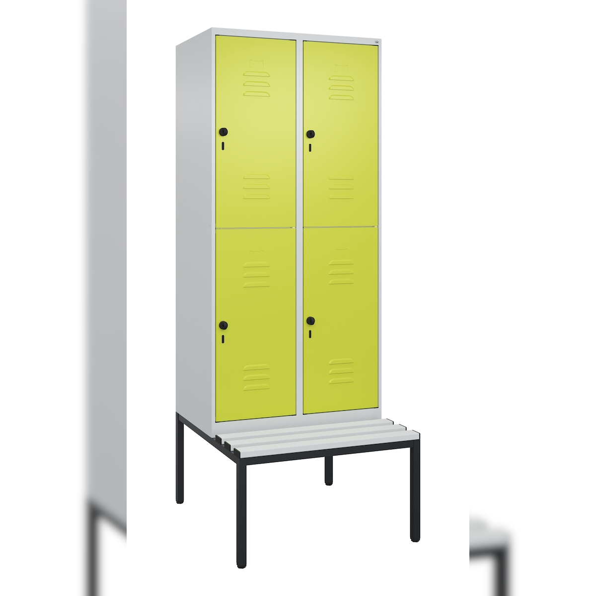 C+P Doppel-Spind Classic PLUS, Kunststoff schwebende Sitzbank, 2 Abteile, HxBxT 212x80x82cm, Sicherheitsdrehriegel, Hellgrau/Clowngrün von PROREGAL