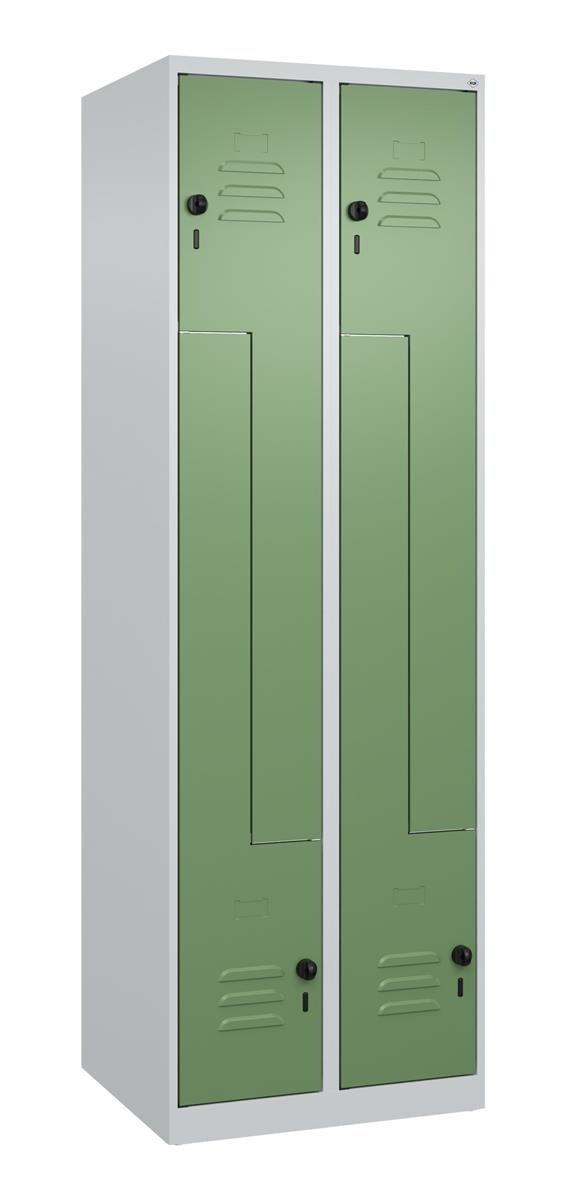 C+P Aufbewahrungs Doppel-Spind Classic PLUS, 2 Abteile, 4 Fachböden, HxBxT 185x60x50cm, Sicherheitsdrehriegel, Hellgrau/Clowngrün von PROREGAL