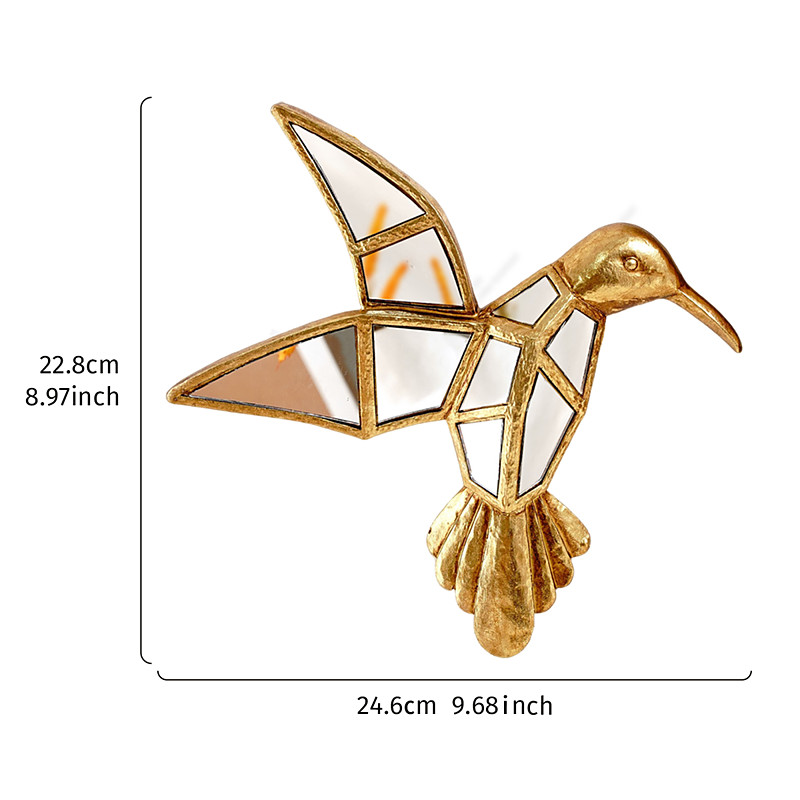 1PC Creative Resin Material Golden Hummingbird-shaped Decorative Wall Hanging With A Special Design of Mirror Inlay on The Surface is Suitable for Home Party Animal House Decoration Hanging