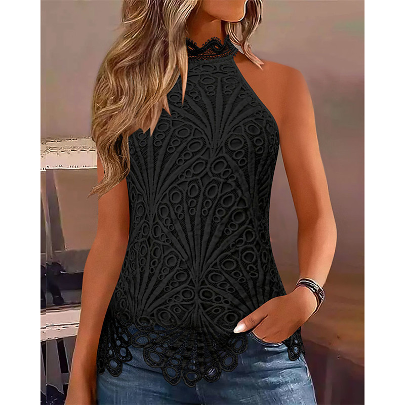 Women's Summer Tops Blouse Dressy Tops Lace Tops Solid Color Elegant Ladies Stylish Sleeveless High Neck Regular Tops Daily Work Going out Ruched Lace Patchwork Blue Black White Yellow Pink Summer