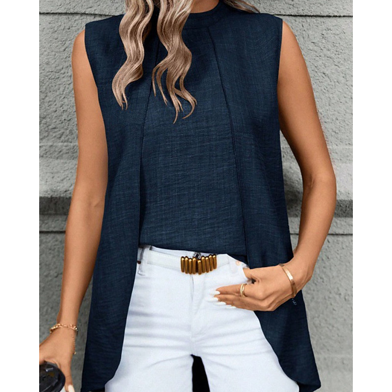 Women's Summer Tops Blouse Dressy Tops Solid Color Plain Elegant Vintage Daily Sleeveless Crew Neck Regular Tops Daily Work Holiday Ruched Patchwork Buttons Blue Black Wine Royal Blue Khaki Summer