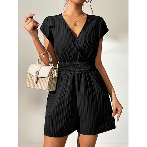 Per donna Normale Pagliaccetto Streetwear Tinta unica Manica Corta Scollo a V Streetwear Quotidiano Vestibilità regolare Nero Blu marino Verde Estate